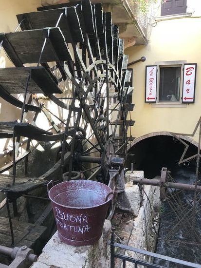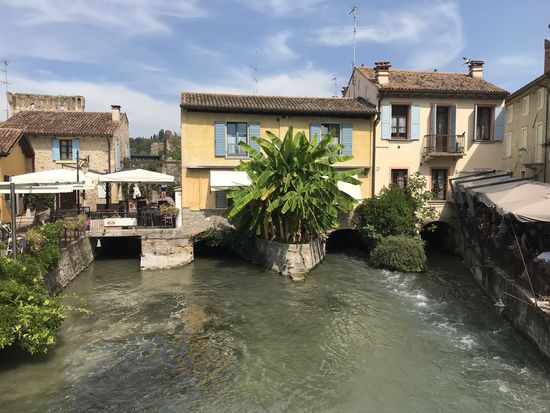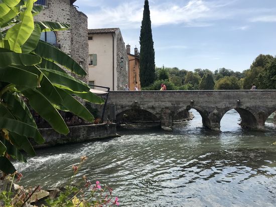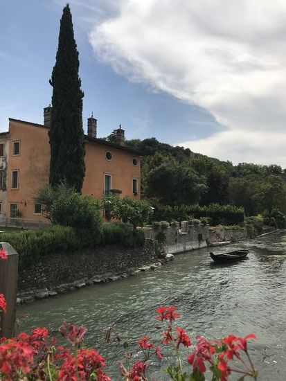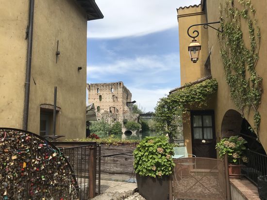 Heute ging es ein wenig ins Landesinnere Richtung Mantova! In das kleine Örtchen Valeggio Sul Mincio mit dem winzigen Mühlendorf Borghetto. Von Bardolino ging es die Strada del Vino Richtung Affi , vorbei an Zypressen,Feldern, Obstbäumen und Reben ins kleine Örtchen Borghetto. Es ist winzig, aber romantisch schön! Und ganz am Ende die Eisdiele ein Traum vom italienischen Eis. Hier sind einige kleine romantische Hotels, einiges an urigen Lokalen und man möchte einfach nur sitzen bleiben und die Atmosphäre genießen. Dann geht es einen schmalen Pfad mit Stiegen hoch zur Skaligerruine mit schönen Blick über die Orte. Von da kann man dann ins Zentrum von Valeggio gehen! Ein stiller kleiner Ort abseits des Tourismus. Kein Pflichtprogramm, es sei den, man steht auf Tortellini! Mehrere Läden die einfach nur frische Tortellini gefüllt in allen Geschmacksrichtungen, frische Nudeln und hausgemachte frische Lasagne haben! Da lief mir doch das Wasser im Mund zusammen und morgen steht die Lasagne auf der Speisekarte und übermorgen Basilikum-Tortellini! Ich werde euch berichten, ob die Optik dieser Gaumenfreude sich bewahrheitet hat.