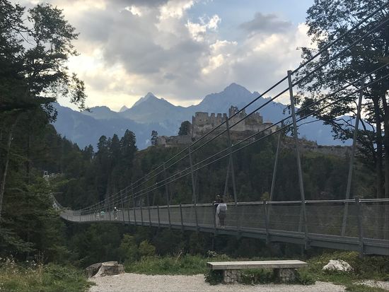 Und ich wäre ja nicht ich, wenn dies heute nur der Anreisetag wäre! Wenn schon in Reutte, dann muss ich die Chance nutzen, oder mich eher der Herausforderung stellen (nicht schwindelfrei) und auf die Highline 179 gehen. Wie oft bin ich schon auf dem Fernpass drunter hergefahren und hab gedacht, wow, da möchtest du mal drüber. Und als ich vorhin davor stand, hab ich gedacht, wow, da willst du eigentlich nicht rüber! Es ist die längste Fußgänger-Hängebrücke der Welt, und für jemanden, der nicht schwindelfrei ist, echt eine Überwindung! Pünktlich auf dem Parkplatz begann das erste Gewitter. Nach der Schauer dann durch den Zauberwald zur Burgruine Ehrenberg auf 1200 m. Und dann bin ich wie eine Katze um das Wasser geschlichen .... Ticket war gekauft, aber schon beim Fotografieren vom Aussichtspunkt war mir schwindelig! Dann irgendwann doch mutig rüber Richtung Fort Claudia. Und erst als ich alles gesehen hatte, kam das zweite Gewitter! Kein blauer Himmel, aber durch die Regenschauer nicht ganz so überlaufen! Beim Hinweg hab ich wie Espenlaub gezittert, der Rückweg war nicht ganz so schlimm, aber weit weg von entspannt �. Auf jeden Fall ist es ein Erlebnis! Und wenn ich morgen zum Fernpass fahre, kann ich sagen, wow, da warst du �.