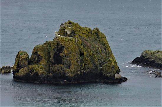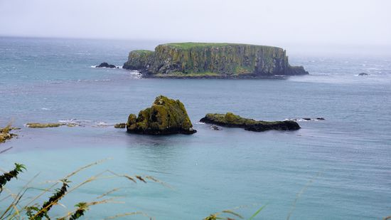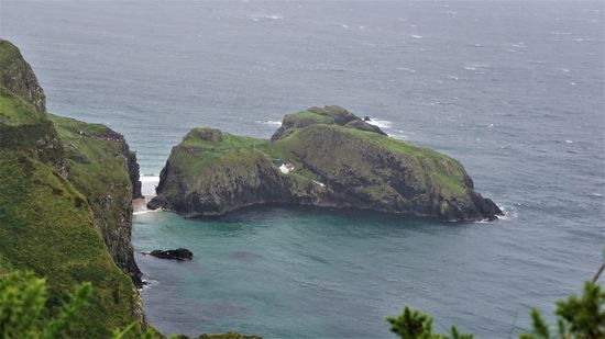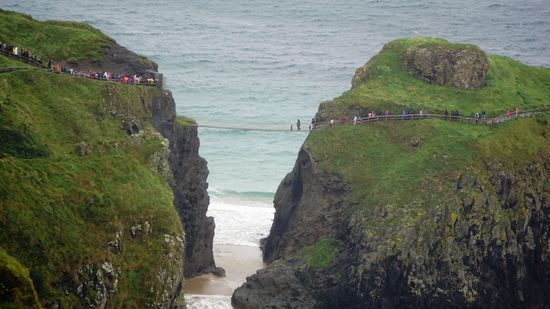 Es geht die Nordküste entlang. Dort gibt es einige touristische Attraktionen, wie diese Schlossruine, eine Hängebrücke und schöne Steinformationen. Aber trotz des miesen Wetters versammeln sich die Urlauber in Heerscharen alle genau an den selben Stellen. Und deshalb schau ich mir die meisten Dinge nur aus der Ferne an.