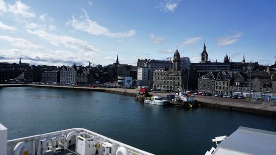 Ich muss 10 Uhr in Dundee aus checken. Bis Aberdeen sind es 90 km, 15 Uhr ist check in auf dem Schiff. Also fahre ich langsam. Später lasse ich das Motorrad am Hafen stehen und schau mich etwas in der Stadt um.