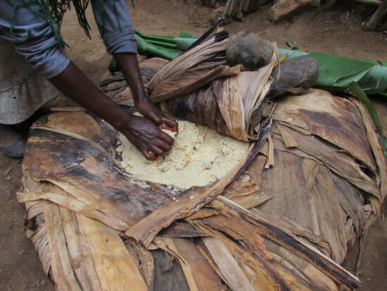 In der Gegend von Arba Minch besuchen wir das Volk der Dorze. Von dieser Volksgruppe gibt es noch ca. 28.000 Menschen. Dieses Dorf liegt auf 2500m Höhe. Der lokale Guide führt uns durch das Dorf und erklärt uns die Lebensweise der Dorze. Die Hütten sind den Elefanten nachempfunden, die hier noch vor 250 Jahren lebten. Man zeigt uns auch, wie das Brot "Kocho" aus "false banana" gebacken wird und natürlich probieren wir es auch -mit Honig ist es sehr köstlich.