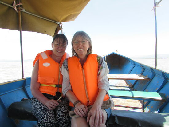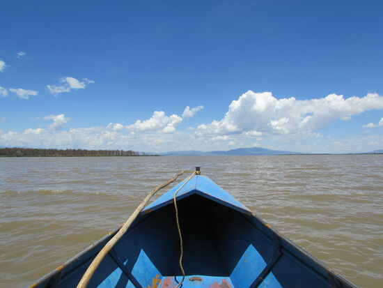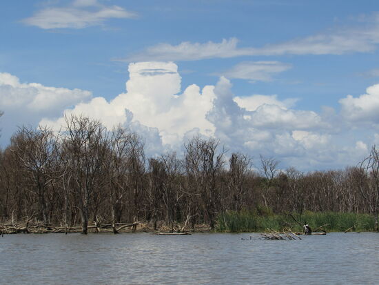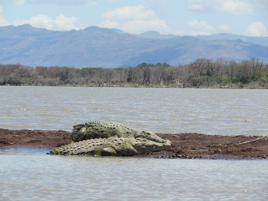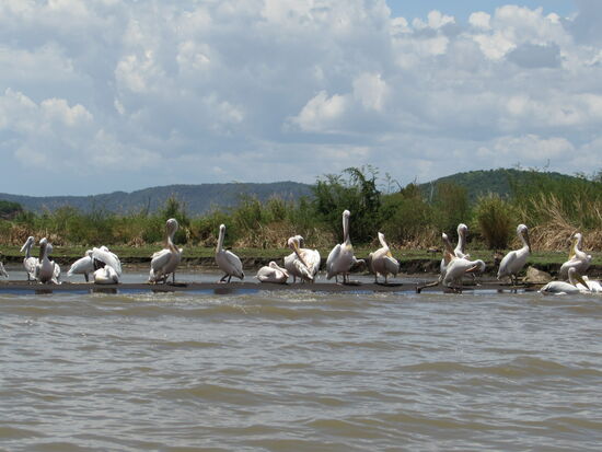Zunächst werden wir mit zwei Schwimmwesten ausgestattet und dann geht es mit Johannes und dem Bootsführer raus auf den See. Neben einigen Krokodilen sehen wir auch Pelikane und eine wunderschöne Naturlandschaft.