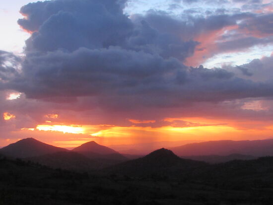 Schließlich liegt das Omo- Tal vor uns. Atemberaubend schön. Als weiterer Höhepunkt wird uns ein Sonnenuntergang von der Natur geschenkt.