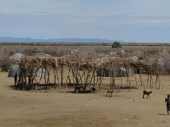 Wir überqueren den Fluß Omo und sehen viele Menschen die in dem kargen Land als Farmer arbeiten und von der Viehzucht leben. Die Viehzucht ist für diese Menschen eine wichtige Grundlage um überleben zu können.