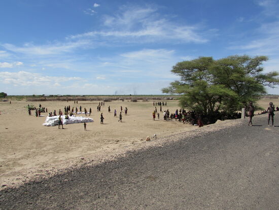 Uns fällt auf, wie abgemagert das Vieh ist. Wir hatten bereits in den Medien über die Dürre in Kenia und Somalia gelesen. Hier wird das ganze nun sichtbar für uns. Es ist traurig anzusehen und je näher wir der kenianischen Grenze kommen, je trockener wird es. Nur noch Wüste und Trockenheit so weit das Auge reicht.