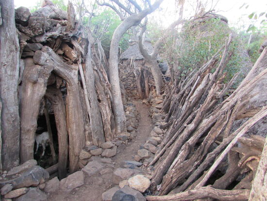 Ihr Dorf entsteht stets oben auf dem Berg. Jede Familie hat einen eigenen Bereich für ihre Hütten. Dieser Bereich ist umgeben von einer Mauer aus Feldsteinen. Ringsherum eine Schutzmauer für alle Familien. Wenn das Dorf wächst, wird außerhalb der ersten Schutzmauer weiter gebaut und dann eine zweite Schutzmauer drumherum gebaut. Das Dorf das wir besuchen hat insgesamt drei Mauern. Es gibt insgesamt noch 300.000 Menschen vom Stamm der Konso.