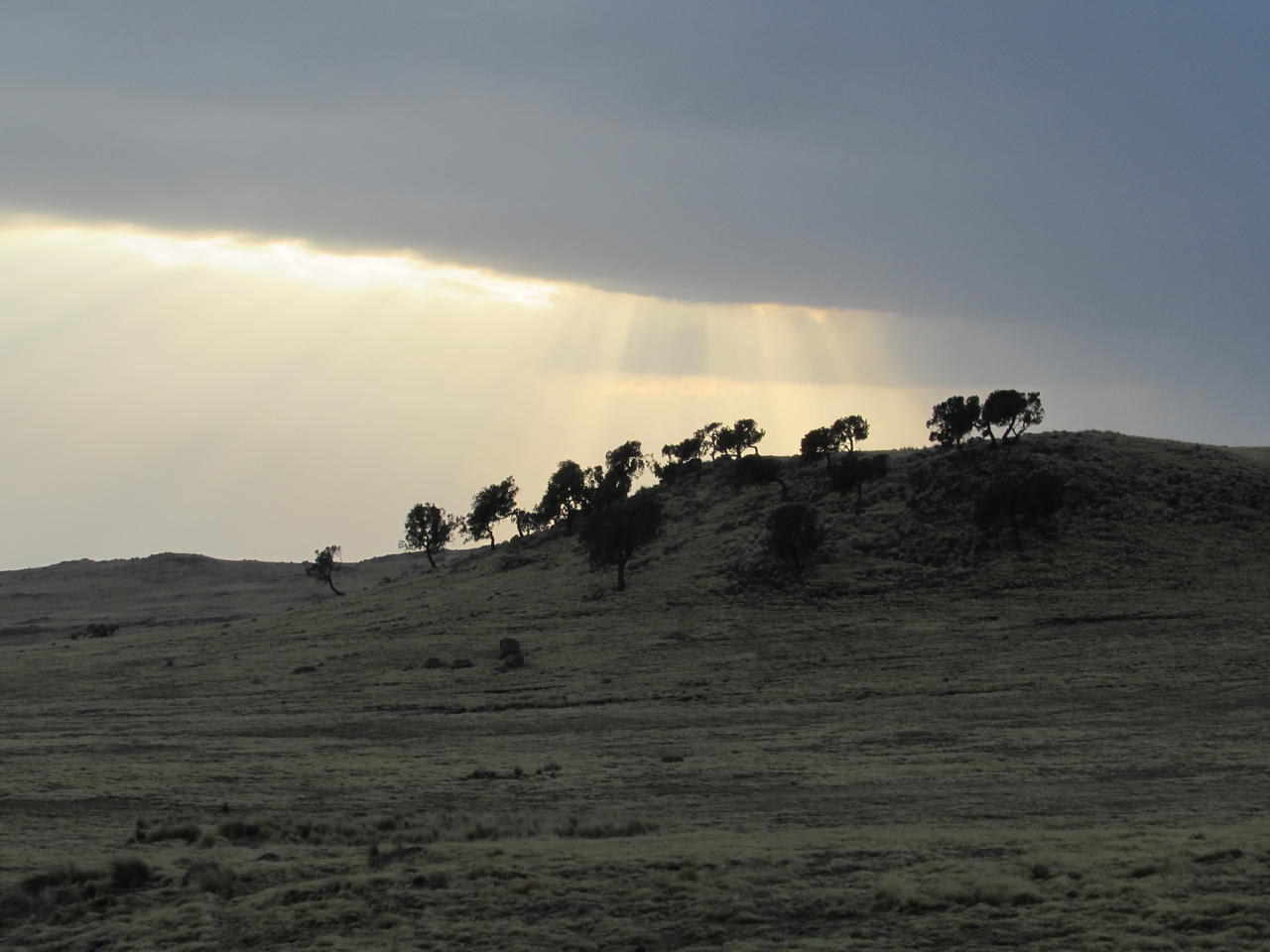 Dann werden wir vom Regen erwischt. Es gibt kaum Unterschlupf, auch die wenigen Bäume helfen da kaum. So steigen wir weiter bergauf und werden dabei total nass. Es ist super anstrengend. Oberhalb von 3000m wird es immer anstrengender.