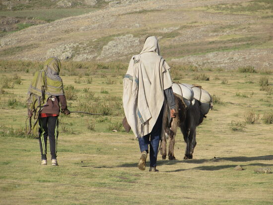 Heute ist Samstag und Markttag in Lalibela. Daher werden wir von vielen Einheimischen begleitet, die ihre Ware auf dem Rücken oder mit dem Esel runter zum Markt bringen. Es ist wie eine Karawane.