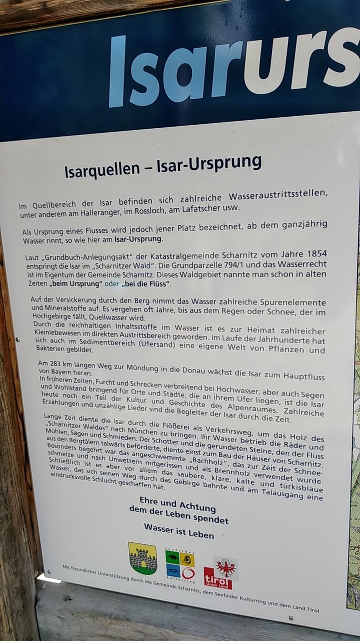 Am Areal des Isarursprungs angekommen. Geschätzt 12 km in südlicher Richtung liegt die Tiroler Landeshauptstadt Innsbruck.