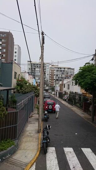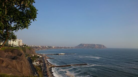 Lima ist bekannt für gute Küche, das kolonial historische Zentrum und die Steilküste mit ihren Parks. Ich freue mich über meine Entscheidung, ein Zimmer an der Costanera gebucht zu haben. Blick auf die Costanera und das Meer.