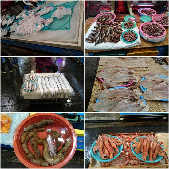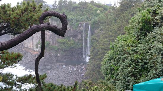 Jeju gefällt mir gut. Der Radweg wäre perfekt, würde ich nicht in die falsche Richtung fahren. An der Küste gibt es Cafés, Restaurants und Bars. Viele sehen modern und individuell aus. Es gibt Strände mit weißem Sand, schwarzen Vulkansteinen und grünem Wasser. Leider ist der Vulkan kaum zu sehen, weil es die meiste Zeit trüb und diesig ist. Auf Jeju komme ich mit Englisch gut durch. Hier gibt es viele Touristen aus Japan, China und Russland. In Seogwipu im Süden mache ich bei Regen einen Pausentag, bewundere die kleinen Geschäfte, den Markt und einen Wasserfall, dessen Besichtigung Eintritt kostet. Abends treffe ich in einer Bar ein interessantes deutsches Paar aus München und freue mich mal wieder eine Unterhaltung auf Deutsch führen zu können.