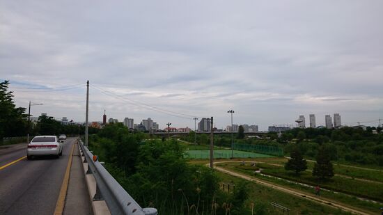 Gangneung erscheint mir gegenüber Andong regelrecht aufgeräumt. Das liegt sicher auch daran, dass Gangneung im letzten Jahr zu den Austragungsorten der Olympischen Winterspiele in Südkorea gehörte. Gangneung liegt am Pazifik. Von hier aus möchte ich mit dem Rad das kleine Stück an der Ostküste nach Donghae fahren, wo am Sonntag, den 19.5. meine Fähre nach Wladiwostok fährt. Das Ticket für die Fähre habe ich unterwegs im Internet gebucht, nicht ohne etwas Spannung. Zunächst hatte ich es bei Directferries versucht, die mir nach 6 Tagen geantwortet haben, dass sie meine Anfrage nicht bearbeiten können. Dann habe ich eine E-Mail an DBS Cruise Ferry geschickt, um ein Ticket für mich und mein Bike zu buchen. Promt kam die Antwort, dass alles ausgebucht ist und es erst ab Mitte August wieder freie Plätze für Motorräder gibt. Nachdem ich klargestellt habe, dass es sich um ein Fahrrad handelt, konnte ich für den 19.5. buchen.