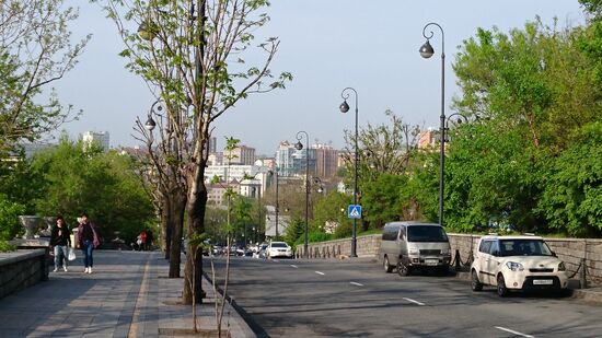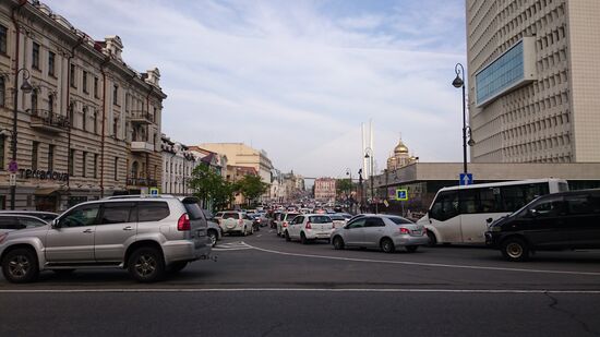 Mir gefällt es in Wladiwostok. Dass ich nun länger als geplant da bleiben muss, macht mir nichts aus. Ich habe Glück im Mai hier zu sein. Das Wetter ist angenehm mild. Klimatisch ist Wladiwostok eine Herausforderung. Im Winter mit sibirischen Nordwinden extrem kalt. Im Sommer kommen die subtropischen Winde über das japanische Meer und bringen feuchte Hitze und Regen. Das Klima hält nicht an der koreanischen Grenze, die nur 100 km entfernt ist. Wladiwostok ist Russlands südlichste Stadt.