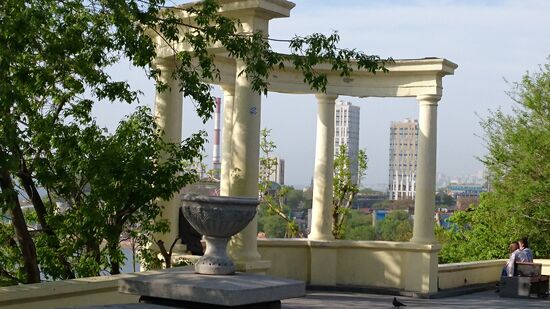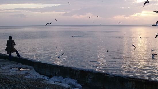 Richtig warm ist es nicht...An der Promenade gibt es jeden Abend Schwimmer und russische Männer turnen an einfachen Turnstangen, die ein paar Tage später verschwunden sind.