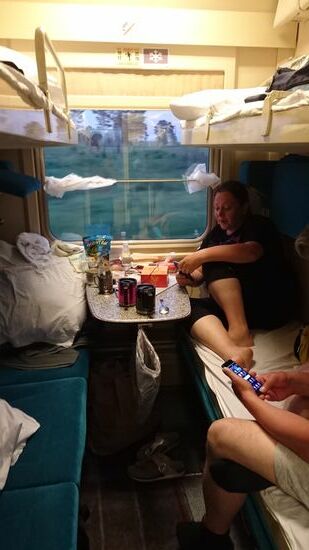 Mit diesem Gepäck stehe ich dann am Bahnhof, um weiter nach Ekatarinenburg zu fahren. Das Fahrrad muss in Wagen 9 und ich mit dem restlichen Gepäck in Wagen 22. Zum Glück hält der Zug an den großen Bahnhöfen lange genug, dass die Zeit zum Ein- und aussteigen reicht.