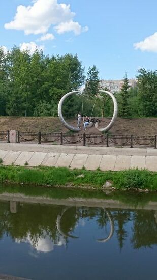 Schaukeln! Es gibt Schaukeln für Erwachsene in den Parkanlagen von Krasnojarsk. Davon wird reger Gebrauch gemacht. Auch ich schaukele eine ganze Weile bis mir schwindelig wird.