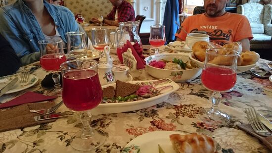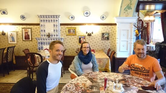 Wir werden in ein russisches Restaurant eingeladen und verbringen den Nachmittag mit Pawel und seinen Gästen.