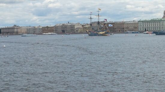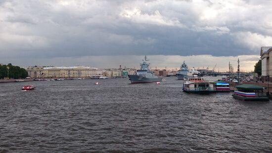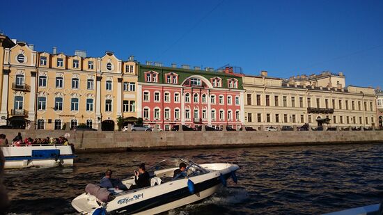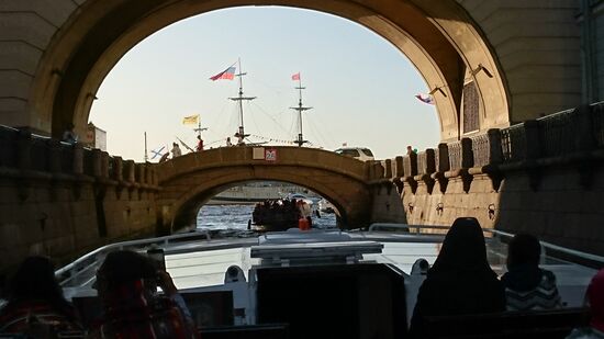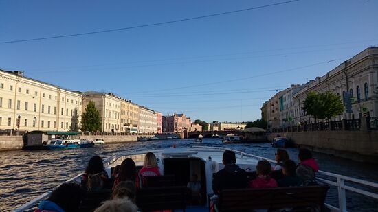 Wir fahren mit dem Taxi in die Innenstadt. Mich erschlägt die Größe der historischen Gebäude. Die Altstadt von St.Petersburg ist UNESCO Weltkulturerbe. Der 28. Juli ist ein Festtag der Marine. Viele Männer tragen blau-weiß gestreifte Hemden. Es wird viel getrunken und auf der Schiffsrundfahrt rufen angetrunkene Männer den Passanten heroische Parolen oder auch Glückwünsche zu. Am nächsten Tag sehen wir Marineschiffe in der Newa. Der Taxifahrer erklärt die Bedeutung des Tages. Wir verstehen es nicht und auch mit googeln finden wir keine Erklärung.