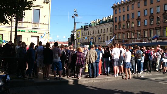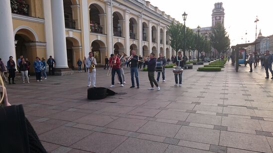 Auf dem Newski Prospekt flanieren die Massen. Kleinkünstler bieten Musik, Gemälde oder Kunsthandwerk. Lange Schlangen vor der Eremitage. Juli ist vielleicht der schönste, aber nicht der beste Monat für eine Stadtbesichtigung.