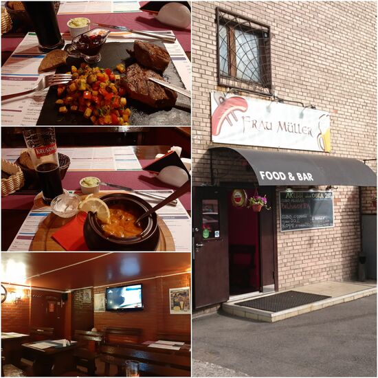 Unser Hotel ist am Rand der historischen Altstadt. Hier beginnen die normalen Gebäude, die nicht herausgeputzten Gebäude. Im Keller um die Ecke kehren wir in der Bar 'Frau Müller ' ein. Es riecht etwas feucht. Aber Atmosphäre, Musik, Essen und Preise sind super. Ich ärgere mich, mir nicht mehr Zeit für St.Petersburg genommen zu haben. Aber so habe ich einen Grund wieder zu kommen.