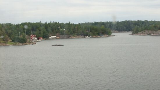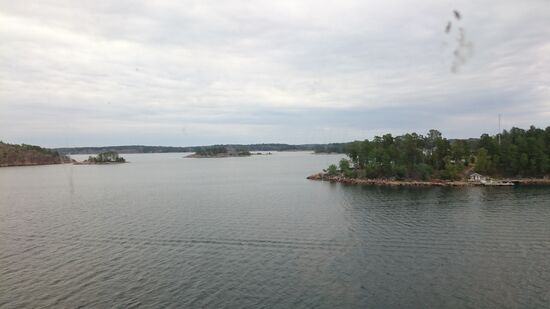 Morgens fährt die Fähre stundenlang durch die vorgelagerten Schären. Kleine Inseln. Auch auf kleinsten Inseln sieht man typisch schwedische Holzhäuser und einen Bootssteg. Auf der Fähre nicht nur Passagiere zur Überfahrt, sondern auch Minikreuzfahrer. Am Frühstücksbuffet Menschenmassen mit völlig überhäuften Tellern. Ich wünsche mich auf das Frachtschiff zurück.