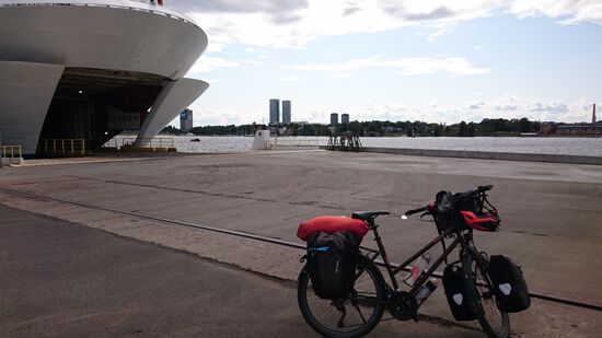 Eine anstrengende Fahrt mit Steigungen und Gegenwind auf guten Wegen nach Nynäsham, wo ich die Fähre nach Danzig nehme.