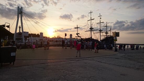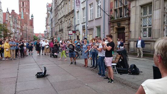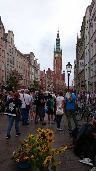 Mit vier weiteren Reiseradlern fahre ich über die Ostsee. Darunter ein Paar aus Polen, die regelmäßig zum Radeln nach Schweden fahren. Den Beiden war ich schon auf dem Weg nach Nynäsham begegnet. Zusammen fahren - leider keine Option. Ich bin viel zu langsam. Die Fahrt mit Polferries ist völlig anders als die Fahrt mit der tallinksilja. Kein Kreuzfahrtcharakter, kein Edelbuffet. Angenehme, einfache Atmosphäre. Einfaches Essen. In Danzig angekommen führen die beiden polnischen Radler uns bis zur Innenstadt, wo gerade der letzte Tag des Augustmarktes gefeiert wird. Fast den ganzen Nachmittag sitzen wir noch zusammen. Die Stadt ist voll mit Menschen und Verkaufsständen. Ich habe den Eindruck, dass nicht nur internationale Touristen, sondern hauptsächlich viele Polen dieses Fest in Danzig besuchen.