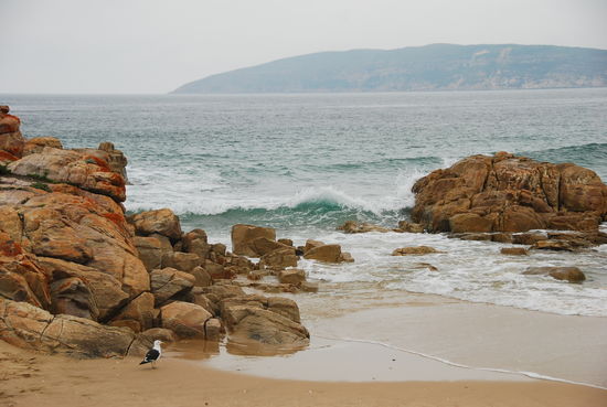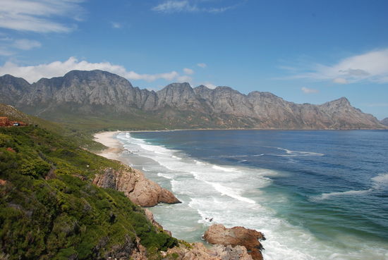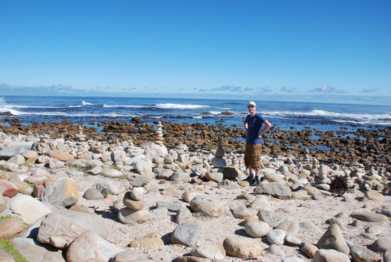 In Somerset West ins Visitor Center anschliessend Fahrt der Küste entlang über Silversands an den südlichsten Punkt namens Kap Agulhas, diese stellt die geografische Grenze zwischen Atlantischem und Indischem Ozean dar. In Sandpiper in Boggoms bay hatten wir eine ganes Haus in Berghütten Style, leider sind wir erst spät angekommen.
