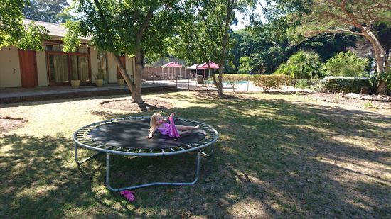 In Somerset West haben wir eine super Unterkunft gefunden mit grossem Garten mit Trampolin, Schwimmbad, Hund....