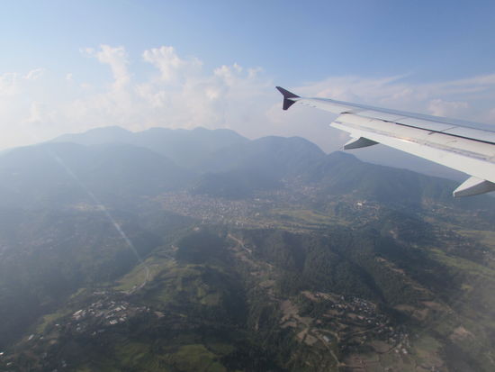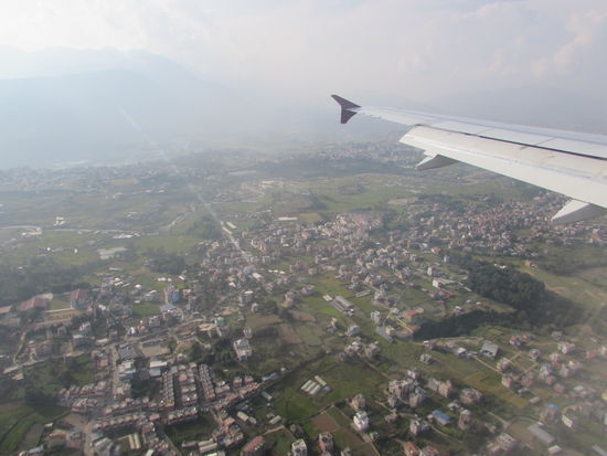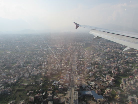 15:45Uhr landen wir in Kathmandu. Die Stadt liegt auf ca. 1200m Höhe. Im Landeanflug hatte ich eine schöne Aussicht auf die Berge und das Kathmandu Tal.