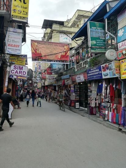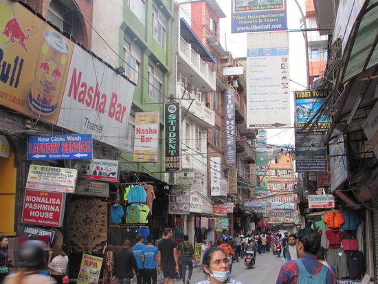 Anschließend bummeln wir noch durch die betriebsamen Gassen von Thamel. Hier ist es sehr touristisch.