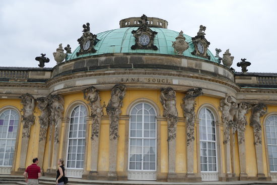Wir marschieren los und erreichen schon wenige Meter weiter den Schlosspark. Eine riesige Anlage, die gleich mehrere Schlösser beherbergt. Schloss Sans Souci gab dem Ganzen seinen Namen und als wir den Bau sehen, sind wir erst einmal enttäuscht. Irgendwie wirkt das Schloss etwas mickrig, die Farbe blättert und ich kann mich des Eindrucks nicht erwehren, dass dieses Bauwerk schon glanzvollere Zeiten erlebt hat. Die Erwartungen waren wohl zu hoch gegriffen. Oder wir haben schon zu viele dieser Prachtbauten gesehen. Jedenfalls sind wir zunächst einmal wenig beeindruckt, um es mit Verlaub zu sagen. Ich hatte mir das Ganze etwas imposanter vorgestellt. Es sind auch sehr viele Touristen in Selfie-Manier unterwegs, so dass es uns bald weiterzieht.