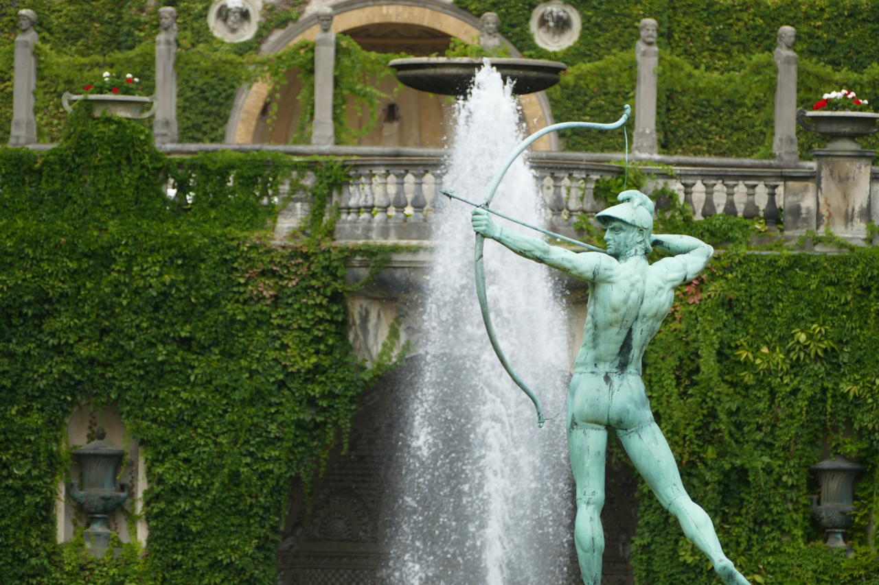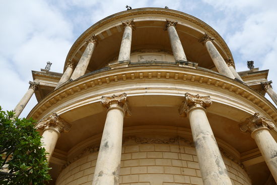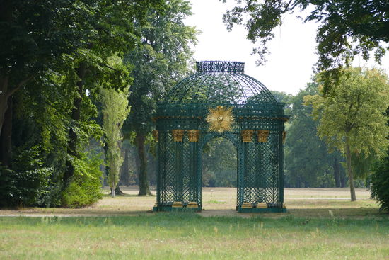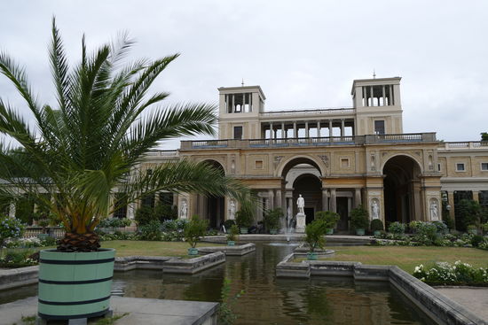 Schon wenige Meter vom Hauptschloss entfernt wird es schnell ruhiger. Auf der oberen Terrassenanlage schlendern wir über die Orangerie und durch eine lange Linden-Allee zum Drachenhaus. In dem schnuckeligen Bauwerk ist ein nettes Restaurant und Café untergebracht, so dass es hier Zeit für eine Kaffeepause wird.