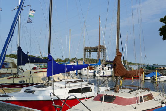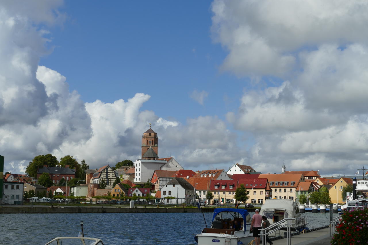 Zurück auf's Festland geht es über die Wolgaster Hebebrücke. Der Verkehr in Richtung Insel durch die Stadt Wolgast ist enorm - es ist Sonntag und schönes Wetter. Wir finden in Wolgast schnell einen Parkplatz und schauen uns die Stadt an, die an diesem Sonntag Vormittag eher verschlafen wirkt. Sie scheint ein Durchgangsort zur Insel Usedom zu sein, in der nur wenige Urlauber Halt machen.