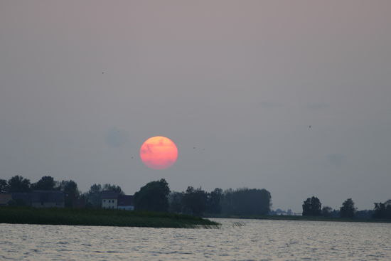 Wie auch immer, nach dem Abendessen setzen wir uns mit einer Flasche Sekt an den Badesteg um hier wieder einen wunderbaren Sonnenuntergang zu erleben. Wir schauen den Kranichen zu und auch die Cafébesitzerin (sie heißt übrigens Karin) kommt vorbei, um ihre abendliche Runde im Wasser zu drehen. Es ist schon fast zu kitschig um wahr zu sein.