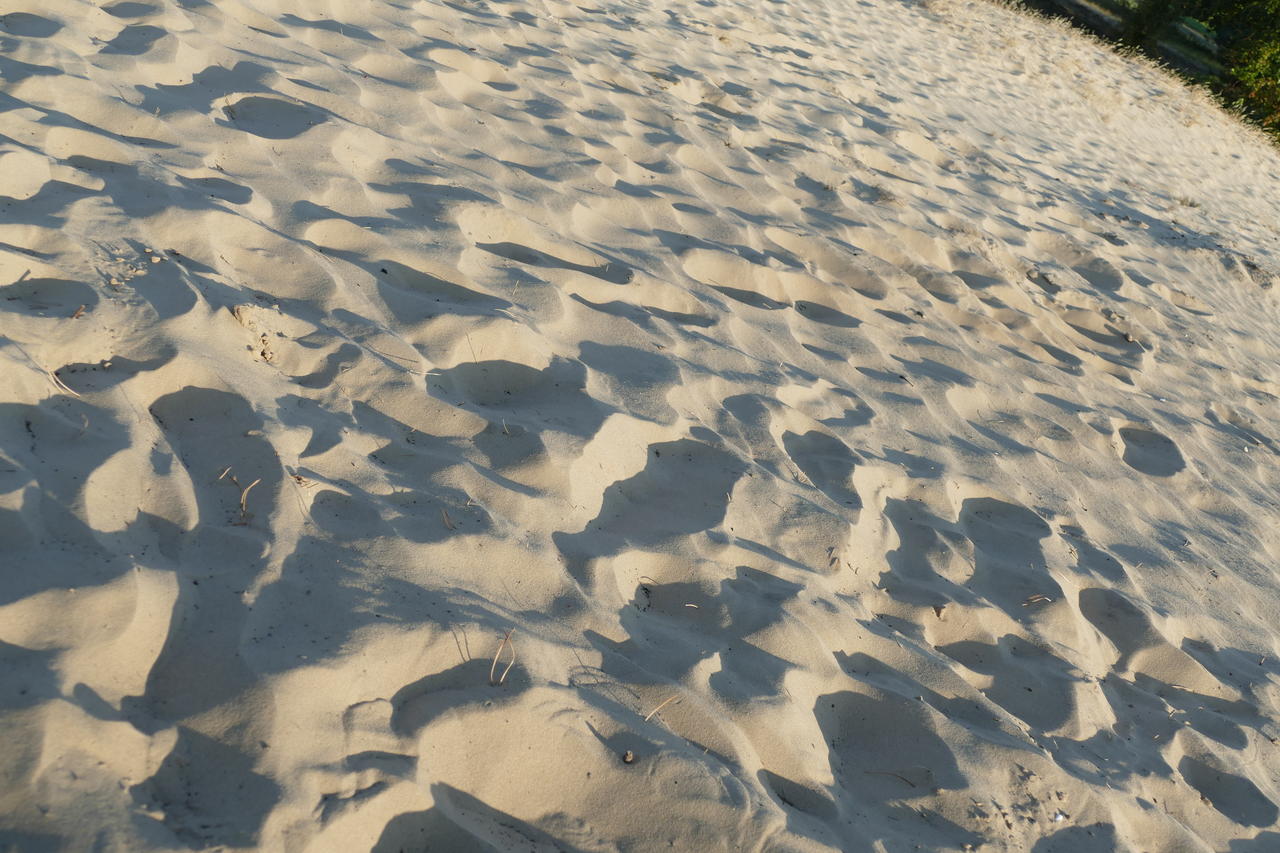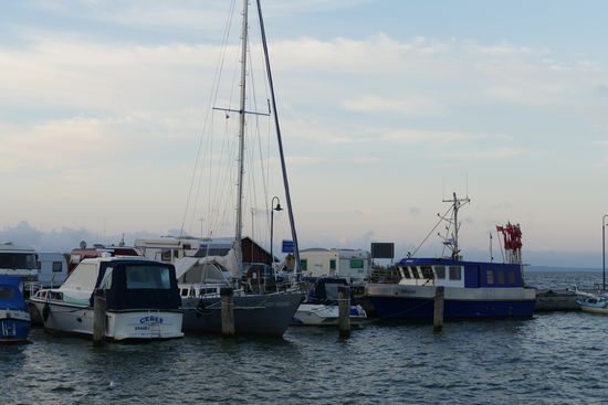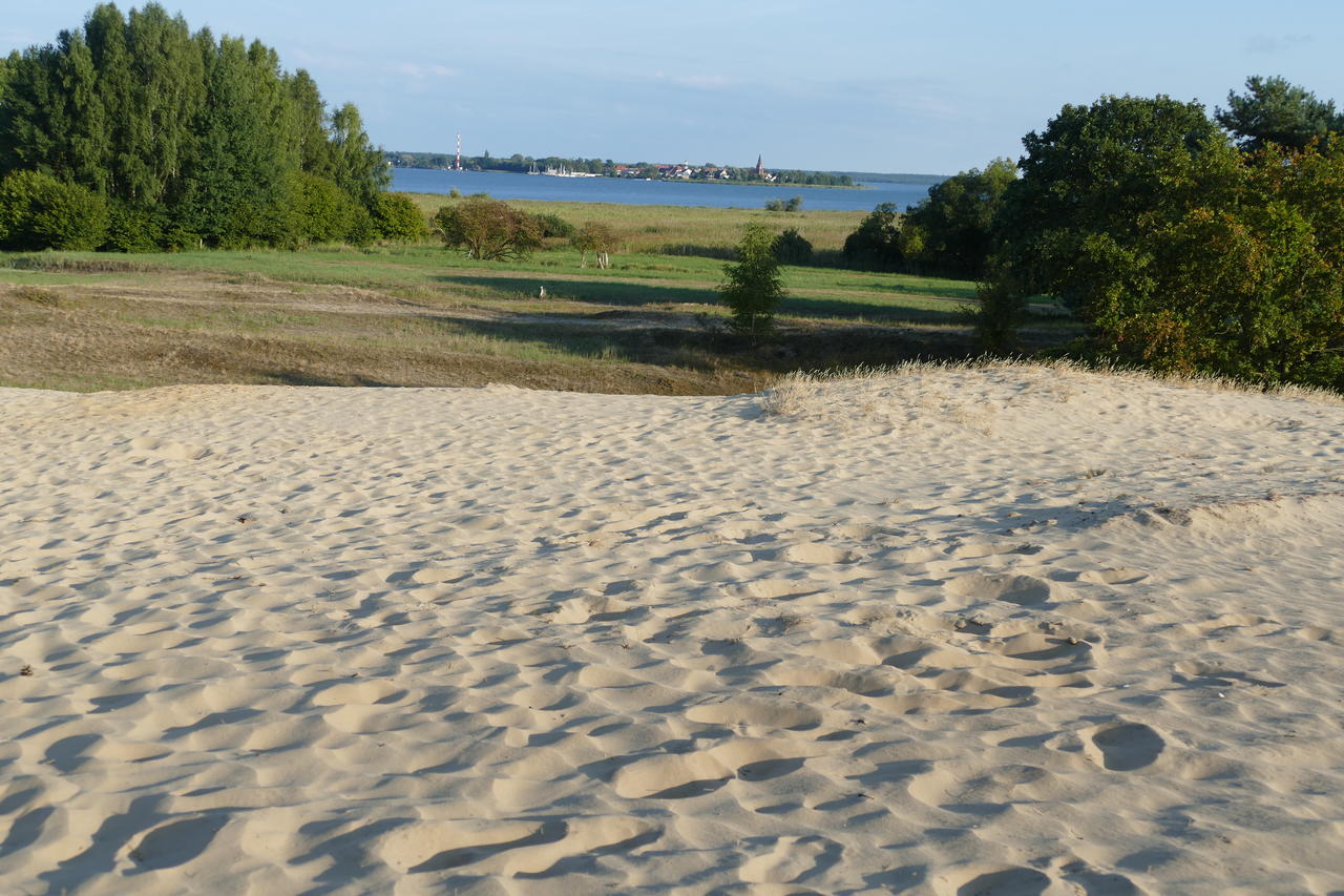 Am Hafen gibt es noch ein Fischbrötchen als kleinen Mittagssnack, dann geht es ca. 15 Kilometer weiter nach Altwarp. Das kleine Fischerdorf liegt auf einer Halbinsel im Haff und in Sichtweite zu Polen. Außerdem sind wir hier am nordöstlichsten Punkt des deutschen Festlandes. Rund um den Hafen ist ein beliebter Stellplatz für Wohnmobile in schöner Lage direkt am Wasser. Für 12 Euro inklusive Strom richten wir uns häuslich ein und machen erst einmal Kaffeepause und Siesta. Dann geht es zu einem Spaziergang in die Dünen. Eines der wenigen Binnen-Dünengebiete Deutschlands findet sich hier auf der Halbinsel. Da kommt doch schon mal ein wenig Marokko-Feeling auf