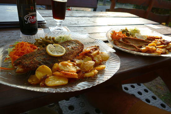 Wieder zurück am Mumin genießen wir noch einen Geburtstags-Champagner im Sonnenschein und machen uns danach auf den Weg zu Gregor's Fischlokal. Hier gibt es super leckere Dorsch- und Barschfilets mit Bratkartoffeln und dazu ein kühles Bier. Herz, was willst du mehr.