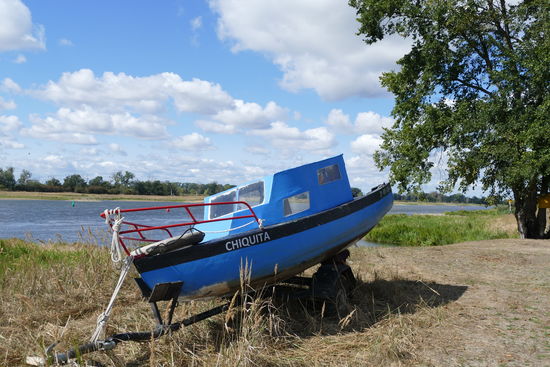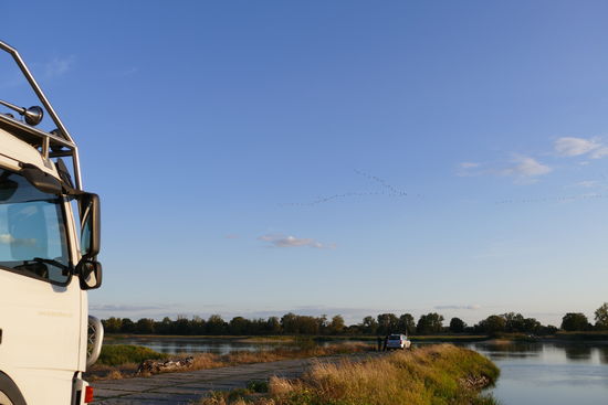 Weil uns der Logenplatz an der Oder so gut gefällt, das Wetter passt und Sonntag ist, beschließen wir für heute einen ersten Faulenzertag einzulegen. Um uns herum trudeln die ersten Angler ein und beim Frühstück ziehen mehrere Kranich-Schwärme lautstark über uns hinweg. Bis wir das jedoch so richtig realisieren und den Fotoapparat zücken, sind die majestätischen Vögel bereits vorbei. Trotzdem ein schönes Erlebnis.