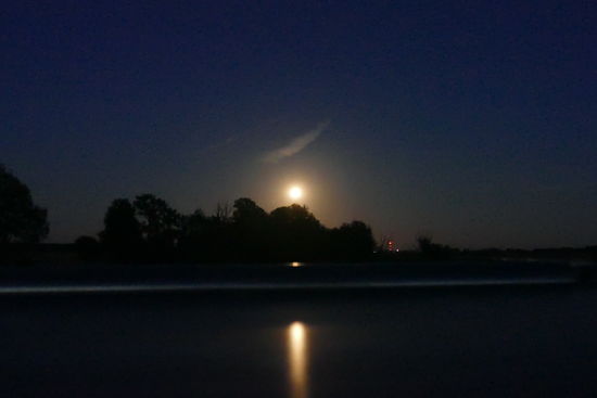 Wir verbringen den Rest des Tages im Sonnenschein, windgeschützt vor unserem Mumin. Gegen Abend werfen wir den Grill an, es gibt Lammsteaks mit Salat und frischem Brot. Dann erleben wir noch einmal einen wunderbaren Sonnenuntergang und nachdem auch die letzten Sonntagsausflügler von dannen gezogen sind, umgibt uns wieder eine absolute Stille. Und nicht zu vergessen: in der Abenddämmerung ziehen wieder etliche Kranichschwärme über uns hinweg. Irgendwo stand zu lesen, dass sie sich tagsüber auf den abgeernteten Feldern niederlassen um gegen Abend an ihre Schlafplätze zurückzukehren.