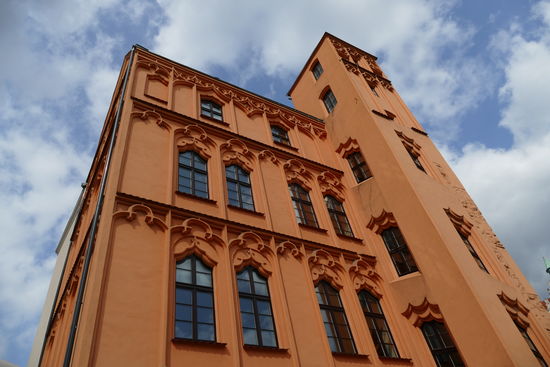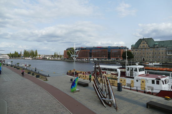 In die Stadt ist es auch nicht weit. Also los geht's und wir schauen uns die Altstadt samt Schloss, diverser Kirchen und einiger schöner Gebäude an. Stettin war im 2. Weltkrieg sehr stark zerstört und die meisten historischen Gebäude sind Rekonstruktionen. Dazwischen immer wieder der "Charme" sozialistischer Architektur. Besonders gut gefallen uns die Haken-Terrassen mit einem tollen Blick auf die Oder und das angrenzende Hafenviertel. Hier lassen wir uns in einem Restaurant nieder und stärken uns mit einem Fisch-Burger. Dann geht's zurück zum Mumin und im Feierabend-Verkehr wurschteln wir uns hinaus aus der Stadt.