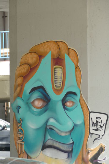 Nach einigem Herumirren im Hafengebiet - hier soll es laut Plan einen bewachten Bus- und PKW-Parkplatz unter der Brücke geben - kapitulieren wir irgendwann und stellen den Mumin unbewacht und kostenlos beim Theater ab. Um uns herum einige Trucks und unser Wachhund wird schon auf unser Schätzchen aufpassen. Außerdem finden wir den Laster hier auf jeden Fall wieder