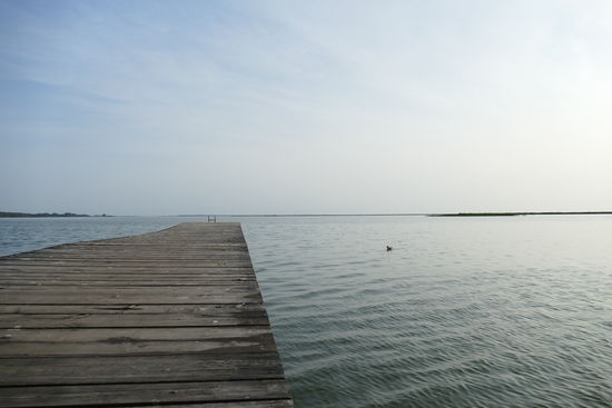 Kurz entschlossen sind wir heute doch noch weiter gezogen. Nämlich rund 28 Kilometer auf die Insel Wolin am Stettiner Haff. Über kleine Nebenstraßen und stille Dörfer ist es hier sehr einsam. Vom Trubel der nahen Ostsee-Küste ist hier nichts zu spüren. In der kleinen Stadt Wolin finden wir an der südwestlichen Spitze der Insel einen sehr schönen und weitläufigen Stellplatz direkt am Haff. Bei unserer Ankunft am späten Vormittag steht noch ein VW-Bus aus Deutschland da und das war's auch schon. Wir nehmen eine schöne Parkposition mit Blick aufs Wasser ein, Stühle raus und ab in den Entspannungsmodus.