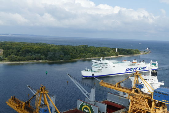 Nach der Nacht auf unserem Großraum-Parkplatz, in der noch einige heftige Regenschauer und kräftiger Wind über uns hernieder gingen, kämpft sich am Morgen bereits die Sonne durch die Wolken. Wir machen uns auf den rund 15 Kilometer langen Weg nach Swinemünde. Dort steuern wir das Wahrzeichen, den 68 Meter hohen Leuchtturm an. Einst höchster Leuchtturm der Welt war der Backstein-Bau eine architektonische Meisterleistung seiner Zeit. Er hat heftige Zeiten überstanden und wir nehmen die 300 Stufen hinauf in Angriff. Oben genießen wir eine wunderbare Aussicht auf die Swine-Mündung und die umgebende Küstenlinie nach Wolin, ins Binnenland und hinüber nach Usedom. Unser heutiges Tagesziel. Ab Swinemünde verkehren auch die Fährlinien nach Schweden (Ystad, Malmö, Kopenhagen mit der Unity-Line). Fast sind wir versucht umzubuchen und Kommissar Wallander in Ystad einen Besuch abzustatten. Aber wir haben leider noch ein zeitliches Limit, so dass es nun "nur" auf die kostenlose Fähre nach Usedom geht.