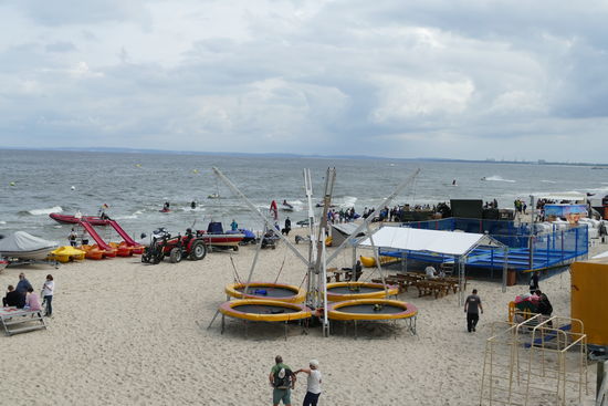 In Ahlbeck scheitert unsere Suche nach einem geeigneten Parkplatz aber in Heringsdorf werden wir am Bahnhof fündig. Der Mumin wird abgestellt, der Hund befreit und wir machen uns auf den Weg ins Städtchen. Heringsdorf gehört zu den drei Kaiserbädern auf Usedom und zählt zu den mondänsten Orten. Uns steht der Sinn neben der klassischen Bäderarchitektur zunächst allerdings nach einem Fischbrötchen. In der Fußgängerzone werden wir schnell fündig und wir machen uns mit unserer "Beute" auf den Weg zur nahen Seebrücke. Nach dem Motto "Schlimmer geht immer" steppt hier nun der Bär. Strandkorb an Strandkorb und Beach-Party mit Großbild-Leinwänden im Wasser, ein Scooter-Contest und Ballermann-Stimmung all überall. Wir dachten schon, das Seebad in Polen wäre schlimm, aber das hier toppt das Ganze noch. Wir essen unser Fischbrötchen, dann geht es auch schon wieder zurück. Das ist einfach nicht unsere Welt. Gesehen und abgehakt - fertig.