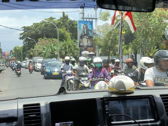 Ich bin geschafft, der Tag war lang und anstrengend, wir wollen nur noch in unser Hotel fahren und etwas Essen. Als wir gemütlich am Tisch sitzen läutet mein Telefon. Ich hoffe schon das sind Dream Divers in Gilli Air, welche ich ebenso um eine Kopie des Arztzeugnisses gebeten habe. Weit gefehlt, es ist die Tauchschule vor Ort, welche auf einmal wortreich erklärt, es gehe doch nicht mit dem Tauchen, es sei zu gefährlich, die Wellen, die Strömung, das Wasser sei kälter als auf Gili, bla bla bla. Ich denke die haben Schiss bekommen, "alter Mann" mit Herzinfarkt und junger Tauchguide. Ob wir gleich vorbei kommen wollen das Geld wieder abholen. Nein, sicher nicht, wir kommen morgen.