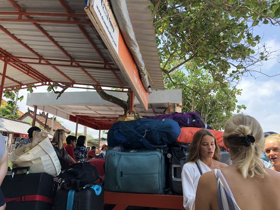 Die Fahrt durch den knüppeldicken Verkehr braucht ganz schön Geduld. Unser Fahrer ist der wildeste Hupper auf der Strecke und bringt uns nach einer Ewigkeit an den Hafen, wo wir uns erst mal einreihen dürfen zum Ticketkauf. Ungläubig sehen wir uns um, gefühlte 1 mio. Menschen wartet auf die Überfahrt, noch schlimmer, genau soviel Riesenkoffer wollen auch mit. Wir beobachten das Beladen und sind uns nicht sicher ob wir da einsteigen wollen. Die Mitarbeiter der Reederei sind unglaublich, sie stapeln 3 Gepäckstücke aufeinander und tragen sie zum Boot, wobei sie dann auch mind. bis zu den Unterschenkeln im Wasser waten. Und wir Weicheier haben unseren Rucksack als schwer empfunden mit den 15 kg!