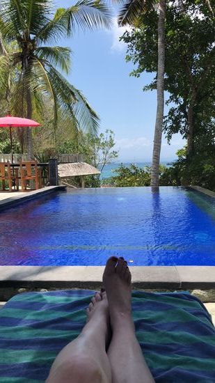 Also schnappen wir uns erst mal unsere Bücher und legen uns an den Pool. Dank Sebastian Fitzeks Romanen, welche wir bei einem anderen Hotel ergattert haben, geht der Tag sehr schnell vorbei. Wir rollern zum Divecenter, wo der Typ hinter dem Tresen meint, wir hatten schon einmal eine ähnliche Konstellation in Griechenland, die Wellen waren heute sehr hoch, ist ja nur für beide Seiten zur Sicherheit. Meine Wut wird immer grösser, frage den "netten" Herren: "und warum habt ihr uns gestern das ganze Packet verkauft und kein Wort gesagt, sonder das Geld genommen?"
