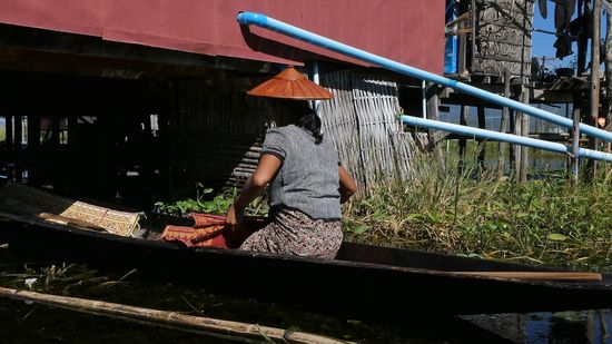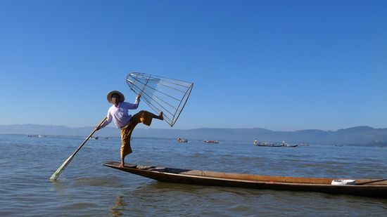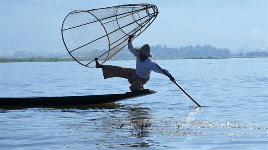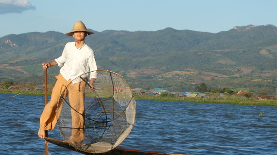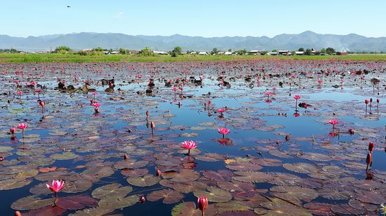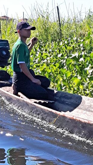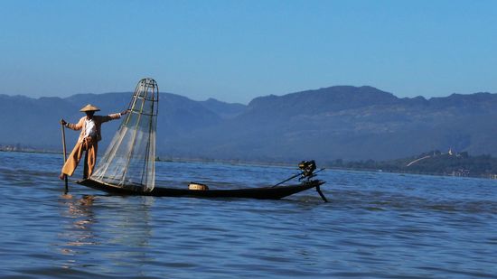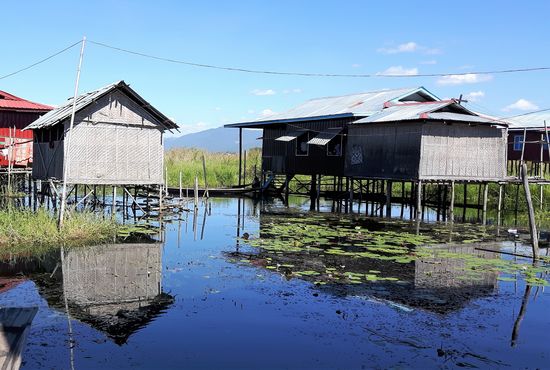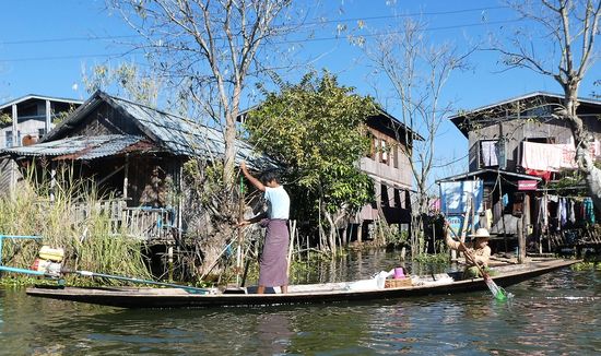 Der Inle-See, ein Süßwassersee im Shan-Staat in Myanmar, ist bekannt durch seine Einbeinruderer und schwimmenden Dörfer und Gärten. Das Leben der Menschen ist völlig auf den See ausgerichtet.