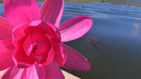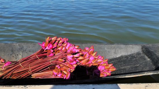 Wir fahren vorbei an Lotusfeldern. Der Lotus kann nur 2 mal im Jahr geerntet werden. Er wird verabeitet in einer Lotusweberei. Lotus ist ist teurer als Seide.