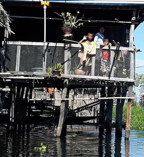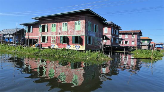Die 17 Dörfer innerhalb des Sees und am Seeufer sind überwiegend von Intha bewohnt. Die Häuser sind auf Pfählen gebaut. Insgesamt wohnen hier 70.000 Menschen.
